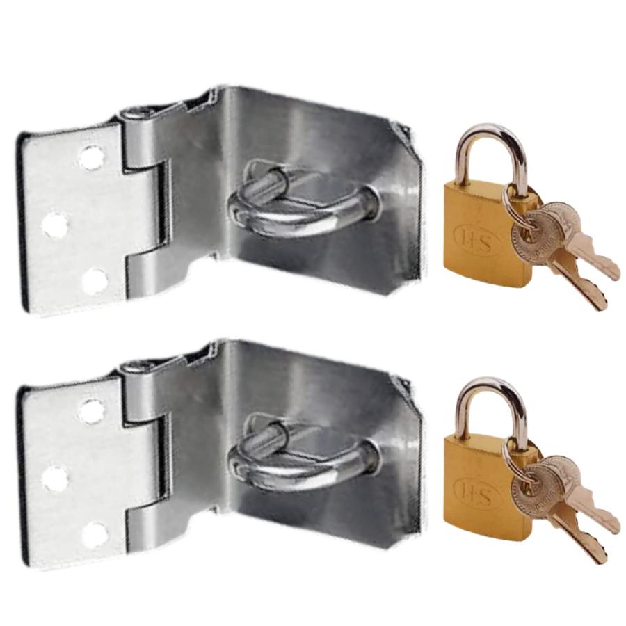 ■heizi ドア ラッチ 鍵 4点セット 南京錠 付き 取付簡単 部屋 物置小屋 窓 扉 の ロック セキュリティ 盗難防止 に (小サイズ)